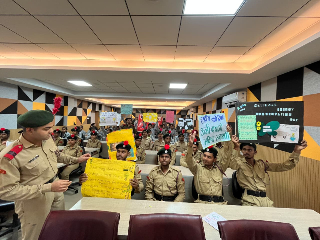 Institutional Training:- The aim of the training is to enable the cadets to build character traits of a good citizen, including the values of regimental way of life which is essentially inculcating the values of discipline, punctuality, respect of authority, correct work ethos and self-confidence. Weekly classes has been arranged in Unversity campus to impart training to the cadets on N.C.C. subjects such as military subjects, leadership and civil duties.